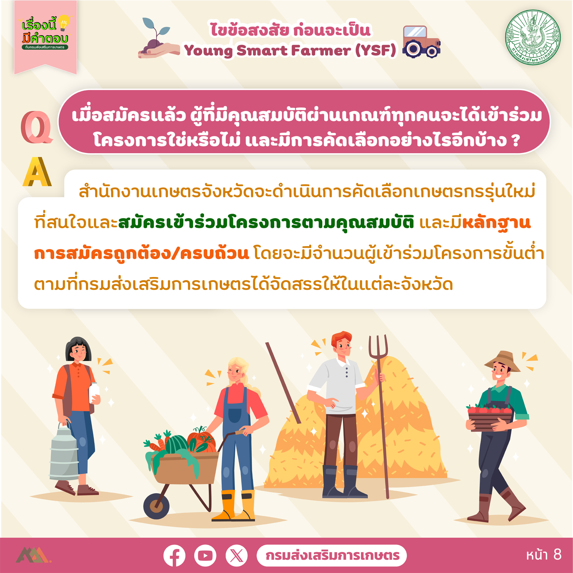 ก่อนจะได้เป็น Young Smart Farmer (YSF) จะต้องทำอย่างไร มีอะไรที่จะต้องรู้ก่อนสมัครบ้าง เรารวบรวมคำถามมาไว้ให้ที่นี่แล้ว